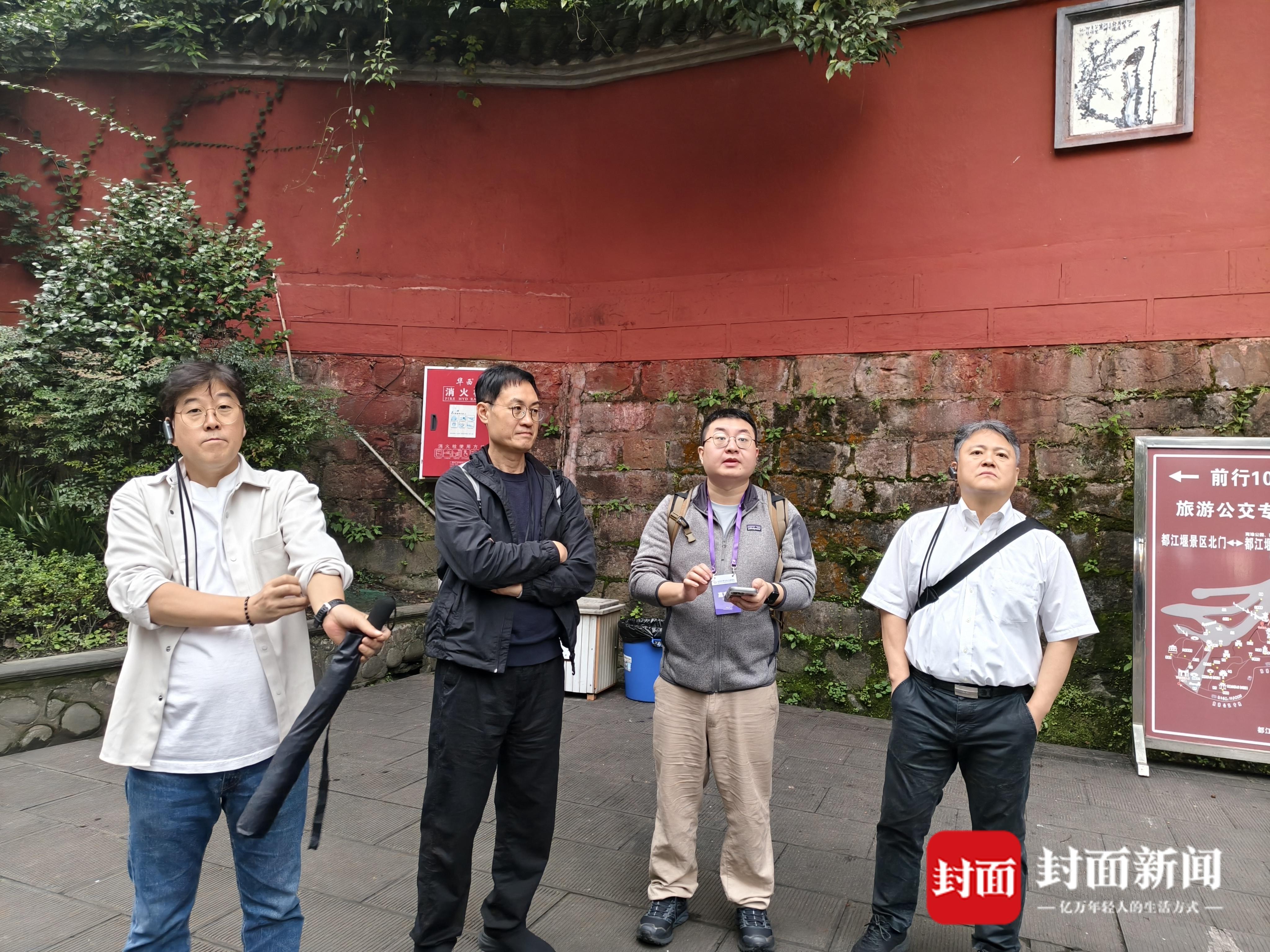 考察首站,专家们登上被誉为“都江堰最佳观景点”的秦堰楼。凭栏远眺,整个都江堰水利工程的壮阔图景尽收眼底。考察团一行从分水的起点——鱼嘴出发,聆听讲解员介绍都江堰“分四留六”的科学设计;继而来到飞沙堰,观察水流分汊、排沙泄洪的过程,感受古人“顺水治水”的智慧;最后抵达宝瓶口,俯瞰内江、外江的交汇水势,体悟“深淘滩、低作堰”的治水哲理。在现场,专家们不时驻足交流、拍照留念,对这座古老工程的精巧构思与持久生命力赞叹不已。
